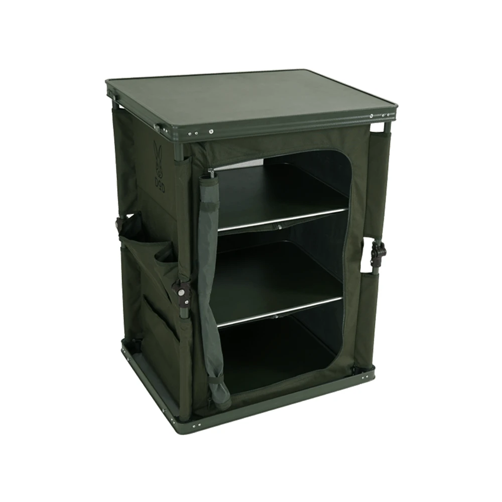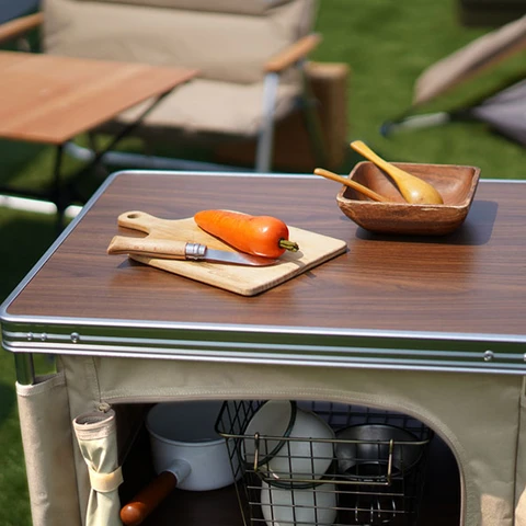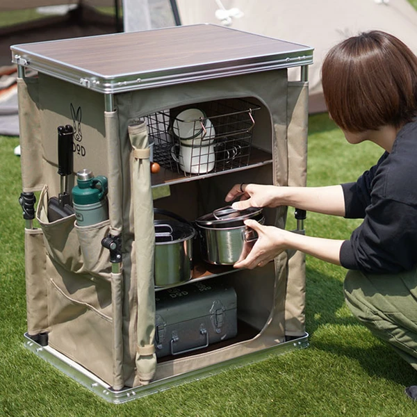 The large three-tiered shelves can store gear and cooking utensils, helping to keep your camping kitchen organized. If you install it in the living room of the camp, you can organize the gear and make the site refreshing.