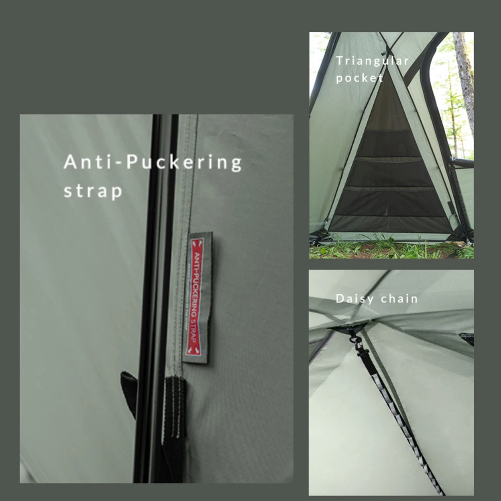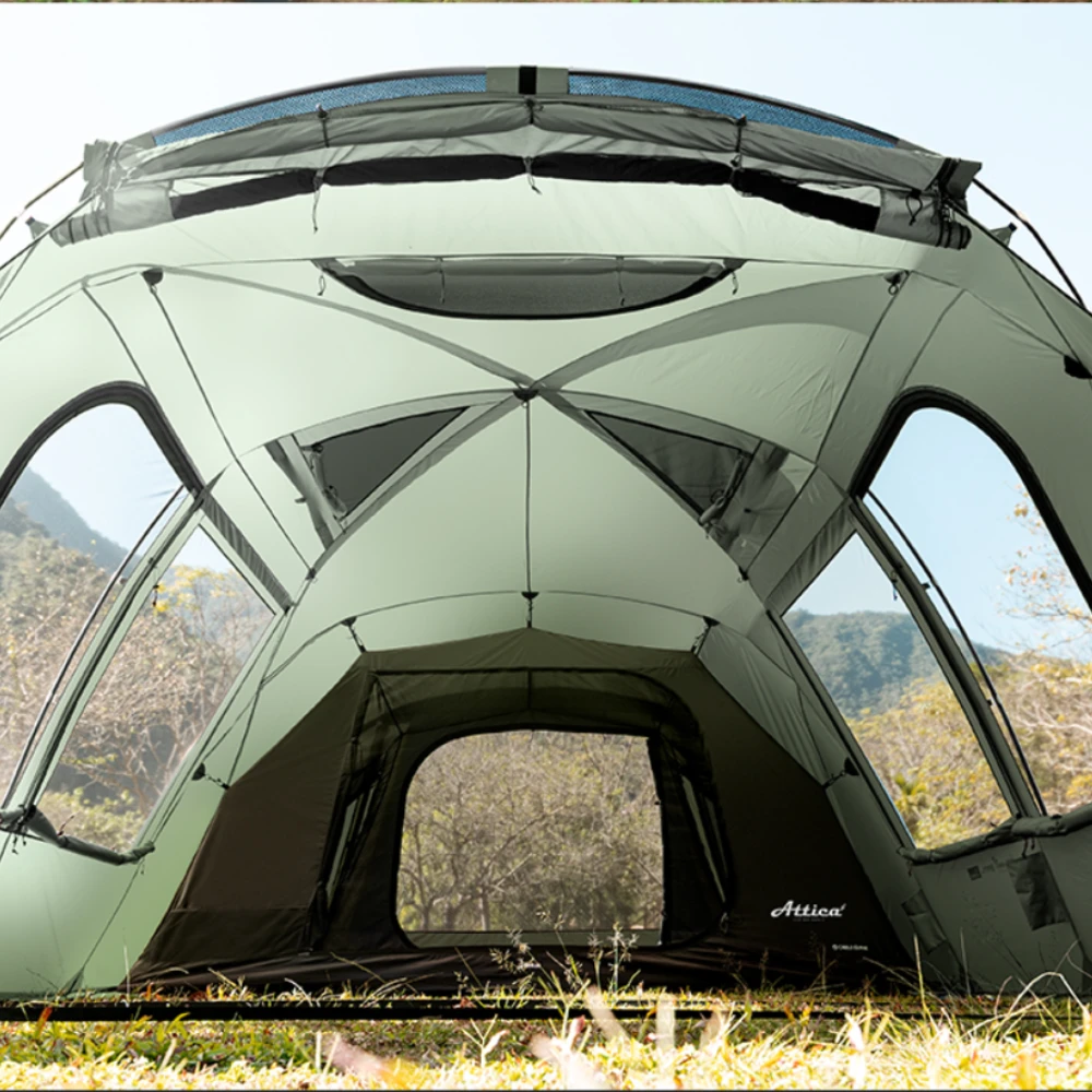 This is a premium large-scale living-shell tent that always provides a spacious and comfortable space. A zero-lux system with low light transmittance can be applied to the inner tent to provide a comfortable sleep when used. The roof has a black pigment coating with excellent light blocking properties. Dense and sturdy mesh windows are applied for smooth ventilation. You can always enjoy a pleasant camping life with the side screen that provides a private space.
