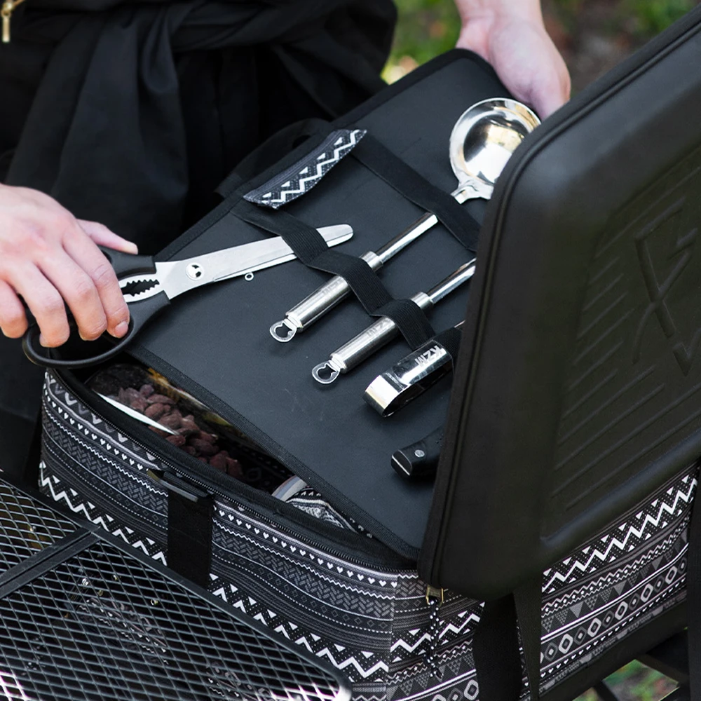 Chef Box is a kitchen bag made of polyester & internal materials that can organize camping kitchen utensils in one place and protect against external shocks, protecting the contents with strong durability. Also, it is an efficient product with Kitchen Tool hangar that is easy to carry and detachable anytime, anywhere.