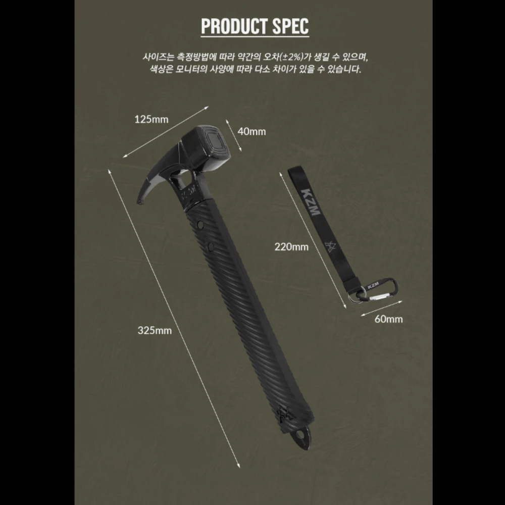 The tank hammer has a 40x40mm wide hammer head that can be hammered with a stable, superior hitting sense, and is engineered in an ergonomic diagonal design, providing a stable and excellent grip to the user with high friction. In addition, the head hook is made at an exquisite angle, making it easy to remove the pack. In addition, there is a strap that is hung on the wrist when using a hammer to prevent the hammer from falling off, so the user can use the hammer safely.