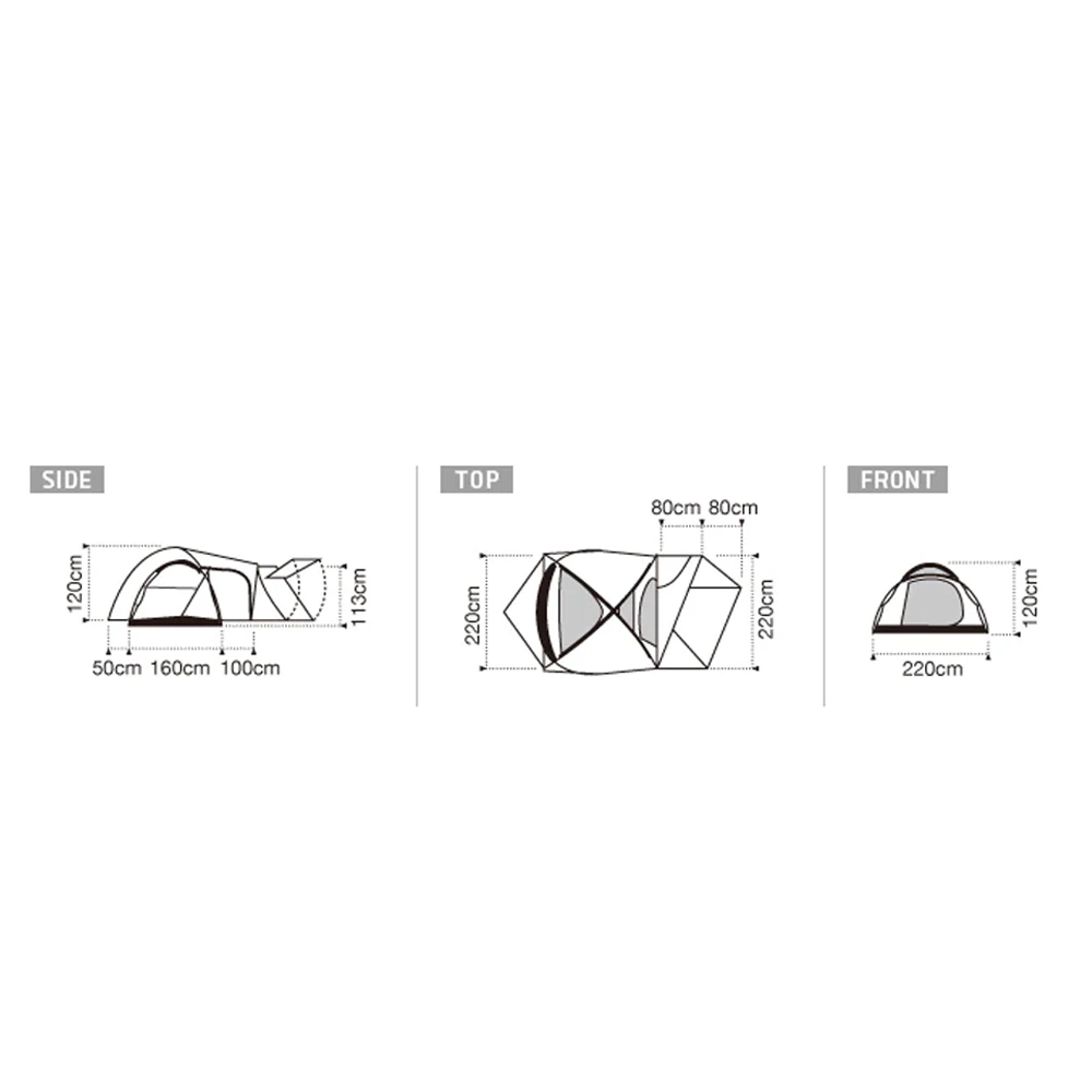 - Flysheet: 75D Polyester Taffeta, PU Coating 1,800mm, Teflon Water Repellent, UV Cut Processing