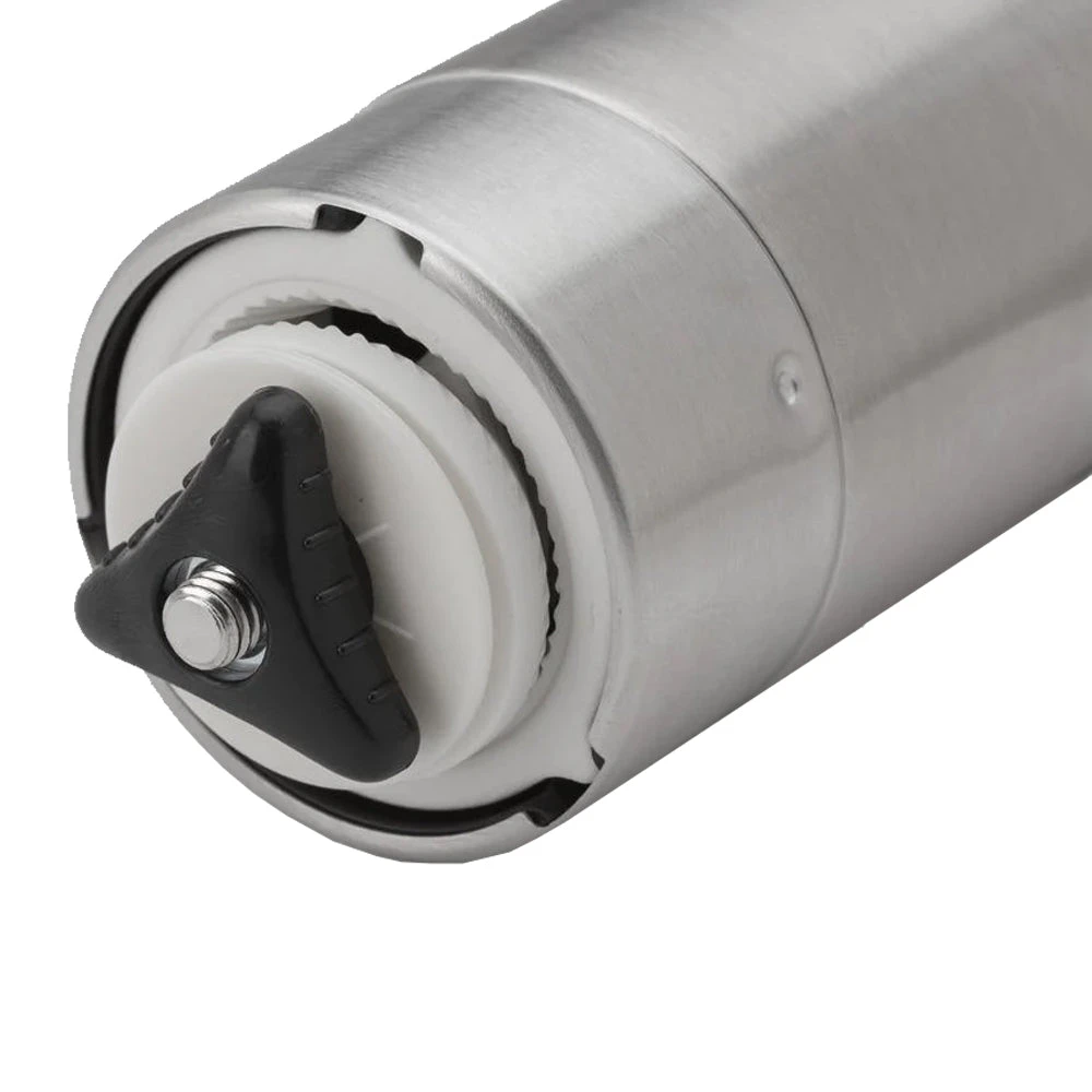 Modeled after professional barista equipment and made of stainless steel, the Field Barista Coffee Mill features an adjustable ceramic burr and produces a variety of coffee grounds. Take it camping or use at home for fresh coffee. Place coffee beans in the top container and turn the handle to grind. After use, the Field Barista Coffee Mill can be folded into a carry case for compact storage.