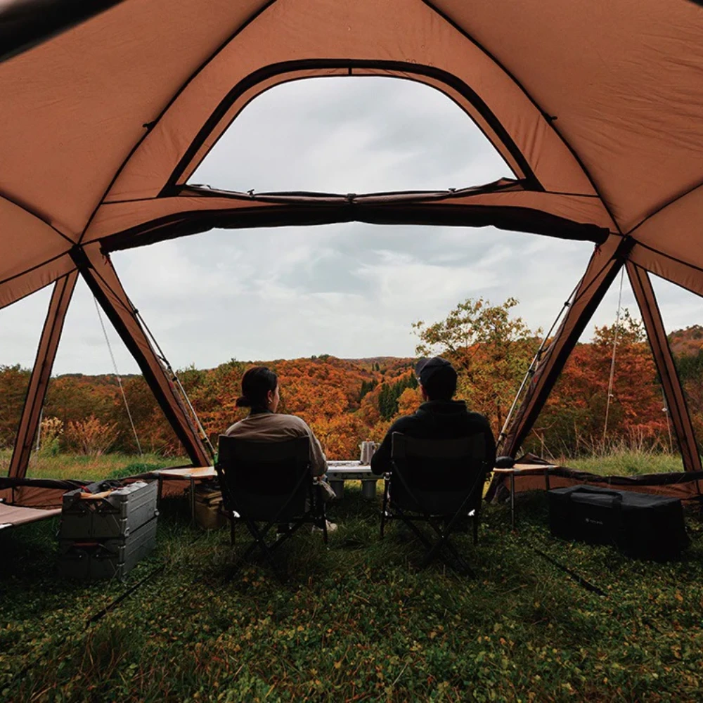 The Zekka is a large shelter that allows a panorama view of nature. With a gently curved design and wide-open front panel, the Zekka provides a sense of openness. The Zekka features two rooms, an inner room, and a gathering space. Pair the Zekka with the Zekka Inner Room for an additional dedicated sleeping space.