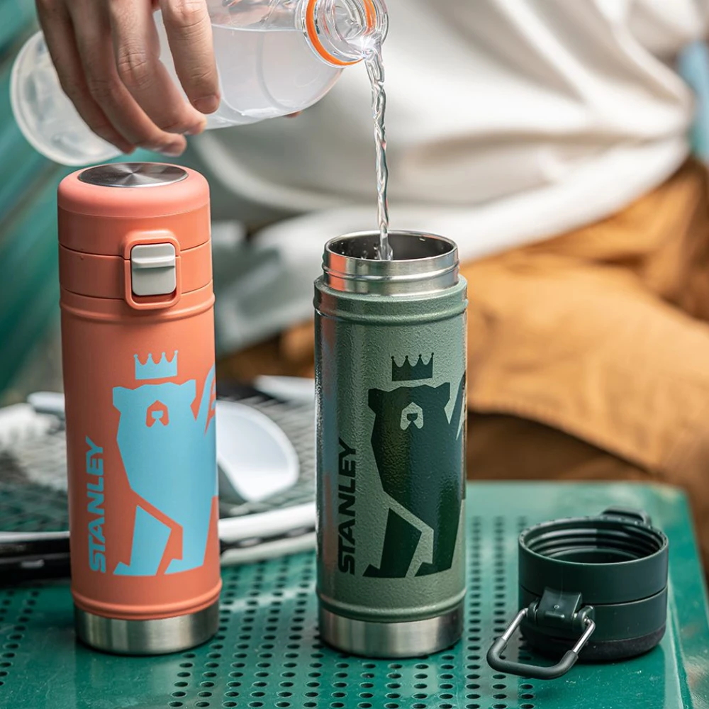 Hydration is key for all wild imaginations. Featuring bright colors and Stan the Bear, this bottle is a durable hydration hero. Smaller hands will love the ergonomic design and rotating handle. Plus, the built-in flip straw makes sipping a breeze. Snap it closed for leakproof packability. And Stanley’s double-wall insulation keeps the beverage ice-cold all day.